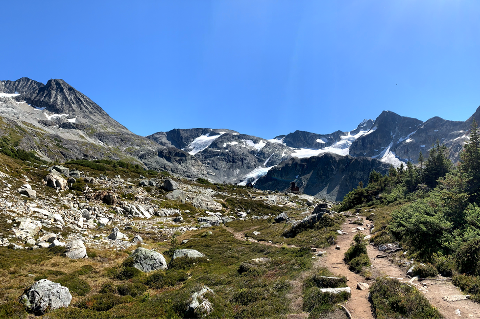 There was a small part in the middle of the hike where the trail flattened out for a bit. It was a bit of a breather for us, but it did not last long. My brother had asked several people on the trail about the destination and they all talked about this scramble at the end that can take 30-45 minutes to get through. I was not 100% sure of what to expect, because everyone's definition of a scramble can be different (e.g. park rangers call the chimney at Black Tusk a scramble and Wedgemount is "not a scramble at all"). However, that gave me preparation for what was to come.